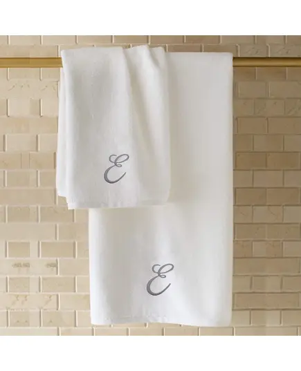 BYFT Iris Embroidered For You Hand Towel 50 x 80 Cm 600 Gsm White 100% Cotton Letter "E" Silver Thread Set of 01