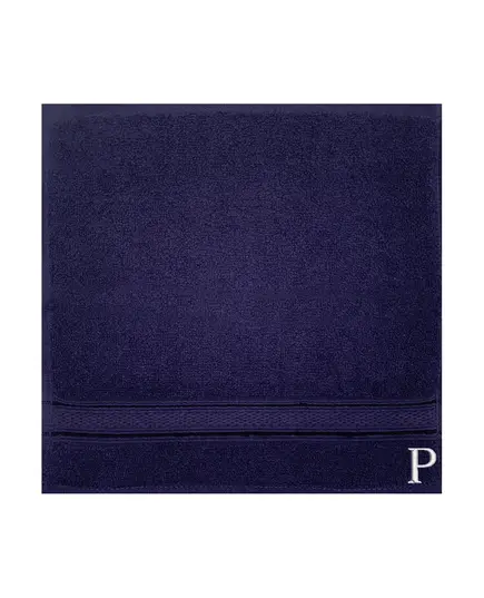 BYFT Daffodil Face Towel 30 x 30 Cm 500 Gsm Navy Blue Stripe Diamond Dobby 100% Cotton Letter "P" White Thread Set of 06